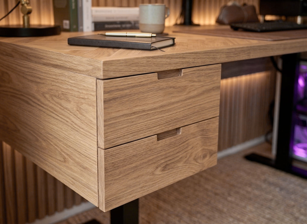 Hay escritorios elevables. Y hay escritorios elevables de castaño macizo trabajados a mano. La Pampa Stand es la única mesa de escritorio regulable en altura que combina un sistema elevable eléctrico de precisión con un tablero de madera maciza seleccionado tablón a tablón. Sin aglomerado. Sin chapa. Solo castaño macizo, lijado a mano y acabado con aceite natural. Porque tu espacio de trabajo merece el mismo cuidado que el resto de tu casa.